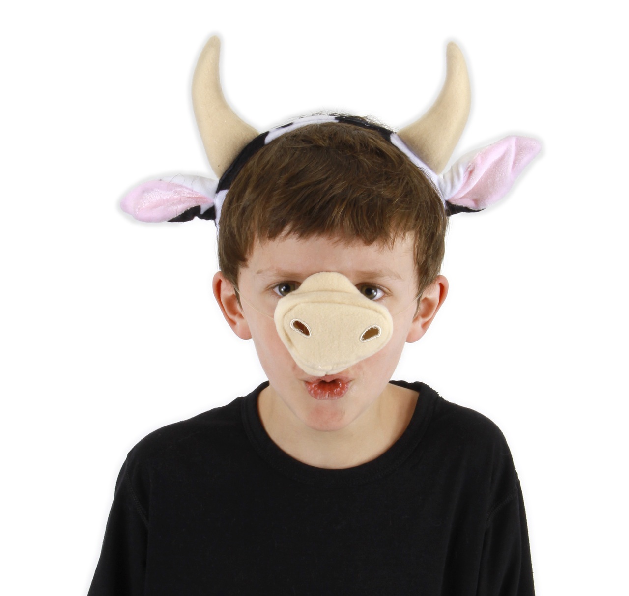 Product Description Mooooove over and make room for this cow costume kit. This kit includes a headband, nose and tail accessories.one size fits most