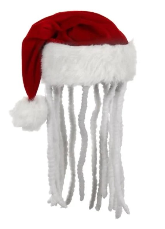 Feel the call of sunny beaches and steel drums even in the depths of winter with this elope Originals Dread Santa Hat.