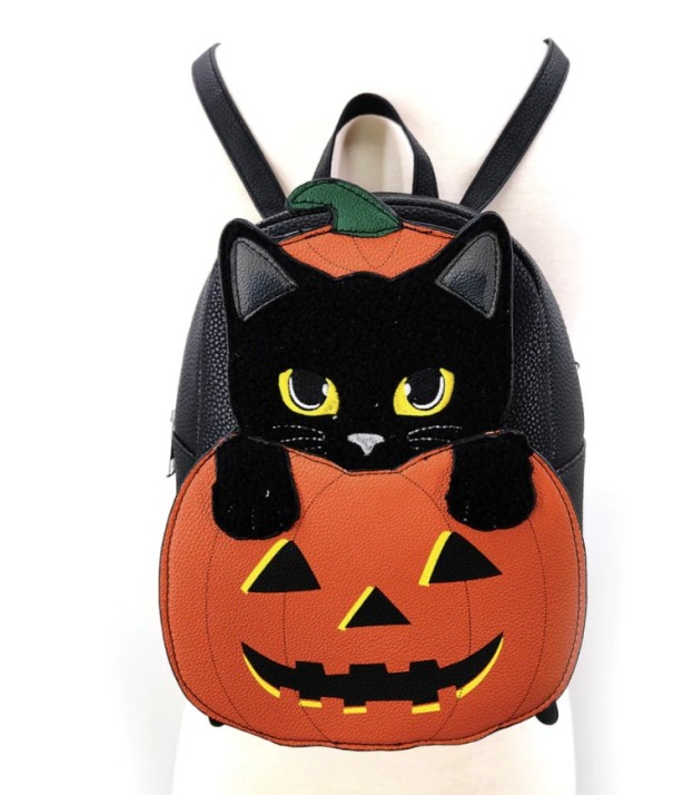Furry Black Cat in Pumpkin Mini Backpack in Vinyl