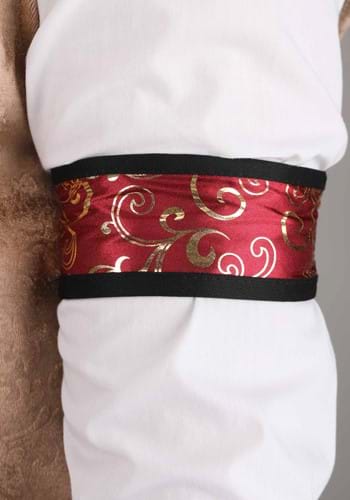 - Taffeta arm band has elastic at back, printed metallic gold swirls