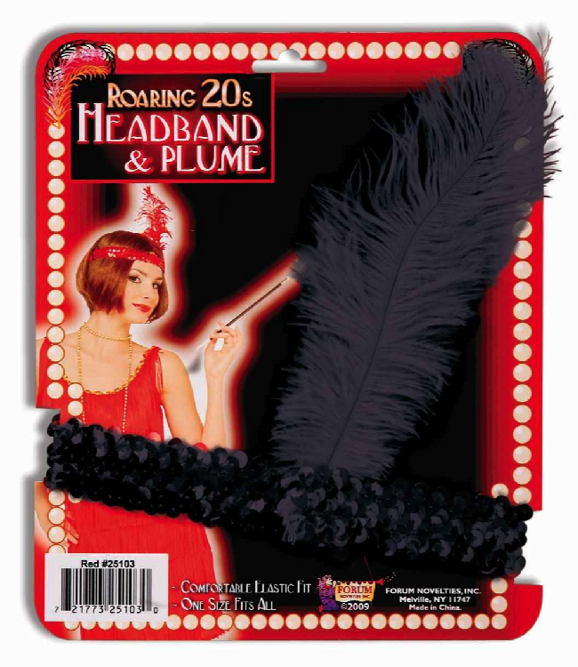 Product Description Roaring 20s Black Sequin Flapper Headband With Black Plum. Great for 20's, Flapper Costumes & The Great Gatsby.