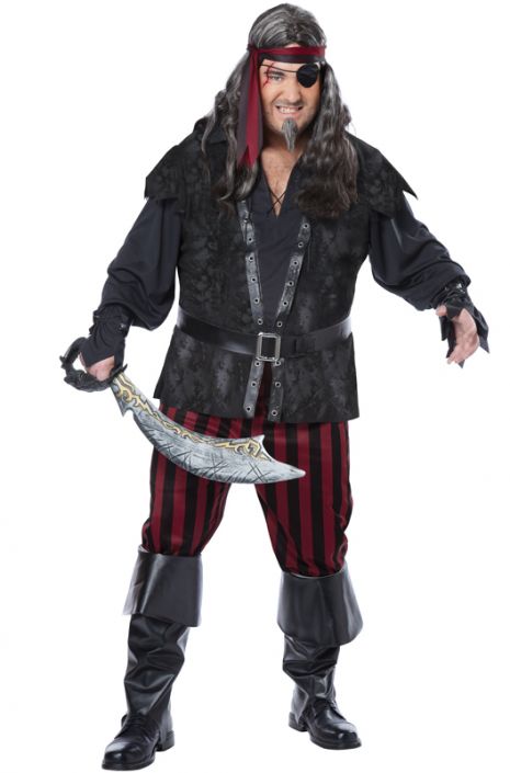 The Ruthless Rouge pirate costume is comprised of a suede styled vest with attached sleeves, pants, wrist cuffs, belt, boot covers, and head tie. Eye patch, sword and shoes not included.