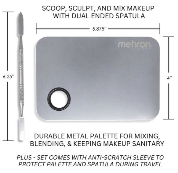No makeup artist kit is complete without these essential tools! Mehron's professional Stainless Steel Artist Mixing Palette with Spatula is the perfect duo for creating custom colors and maintaining clean, sanitary makeup products.