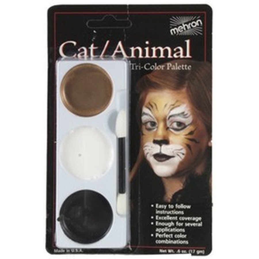 A Superb quality cream makeup provides complete, long lasting coverage. Each palette includes a vivid character photograph and detailed easy to follow application instructions. These Tri-Color Makeup Character Palettes are fun and easy to use. Remove with Makeup Remover followed by soap and water.