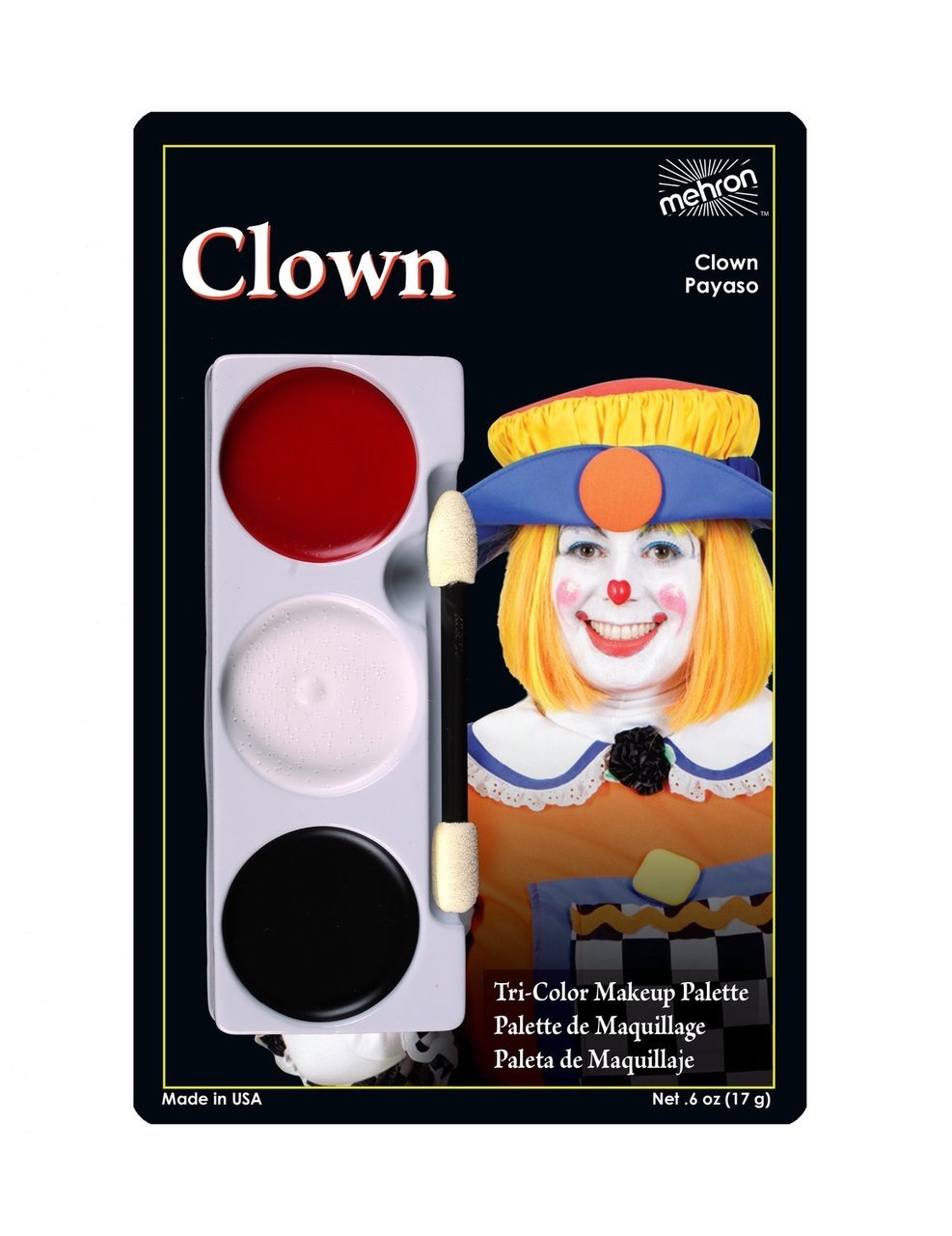 A Superb quality cream makeup provides complete, long lasting coverage. Each palette includes a vivid character photograph and detailed easy to follow application instructions. These Tri-Color Makeup Character Palettes are fun and easy to use. Remove with Makeup Remover followed by soap and water.