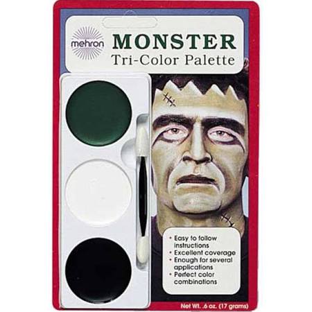 A Superb quality cream makeup provides complete, long lasting coverage. Each palette includes a vivid character photograph and detailed easy to follow application instructions. These Tri-Color Makeup Character Palettes are fun and easy to use. Remove with Makeup Remover followed by soap and water.